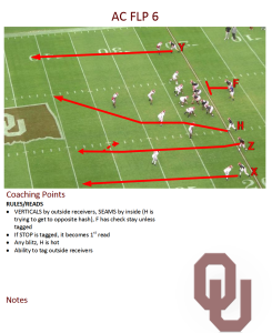 -Versus two high, work the seams between the safeties, or a hole shot outside when the corner squats. If middle closed, bend the Y; if middle open, stay vertical.